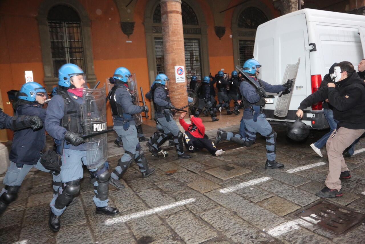 “Dal concentramento, che era all’incrocio della stazione sui viali, in circa 500 siamo partiti bloccando i viali in un corteo selvaggio. Ci siamo diretti verso la sede della Provincia in via Zamboni 13, l’istituzione che gestisce i fondi scolastici. Una volta arrivati la risposta alle legittime richieste degli studenti e delle studentesse è stata sempre la solita: palazzo chiuso e polizia schierata che con una violenza inaudita ha fatto ben tre cariche a freddo. Non ci siamo però fatti intimidire e siamo rimasti continuando a gridare ‘assedio!’,riportando in città il clima del 19 Ottobre romano. Diversi di noi sono rimasti feriti e un ragazzo è stato fermato, ma con determinazione e senza paura abbiamo resistito finché il nostro compagno non è stato rilasciato. Siamo poi ripartiti in corteo continuando a bloccare la città”, raccontano gli studenti nel comunicato.